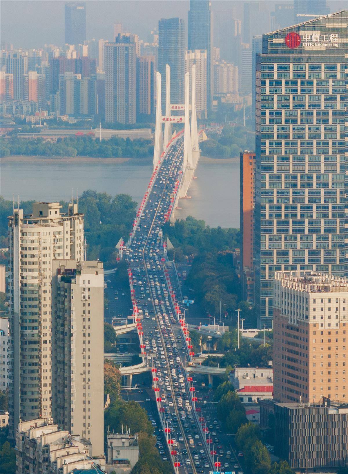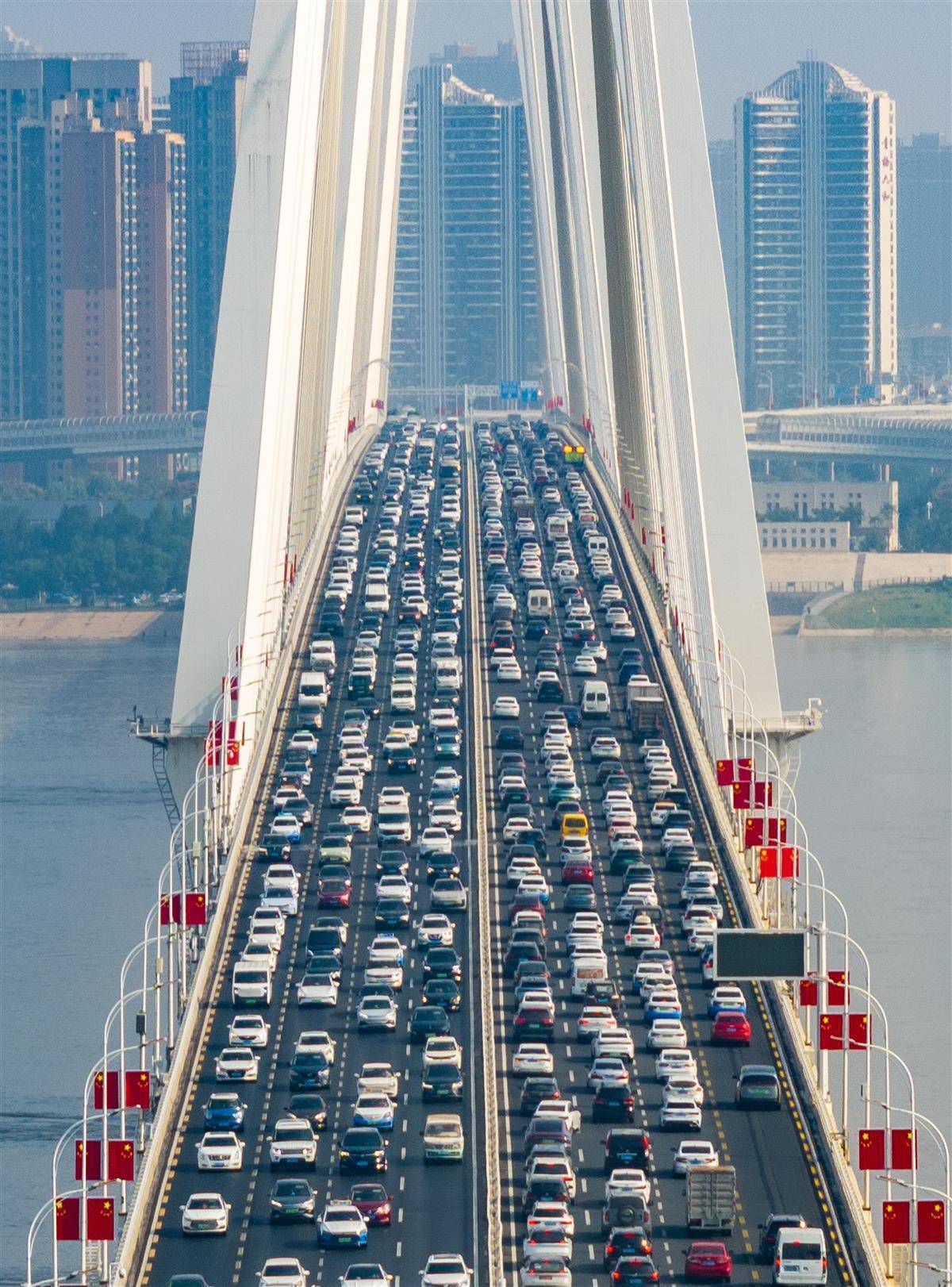 10月8日下午4点,武汉二七长江大桥车水马龙。